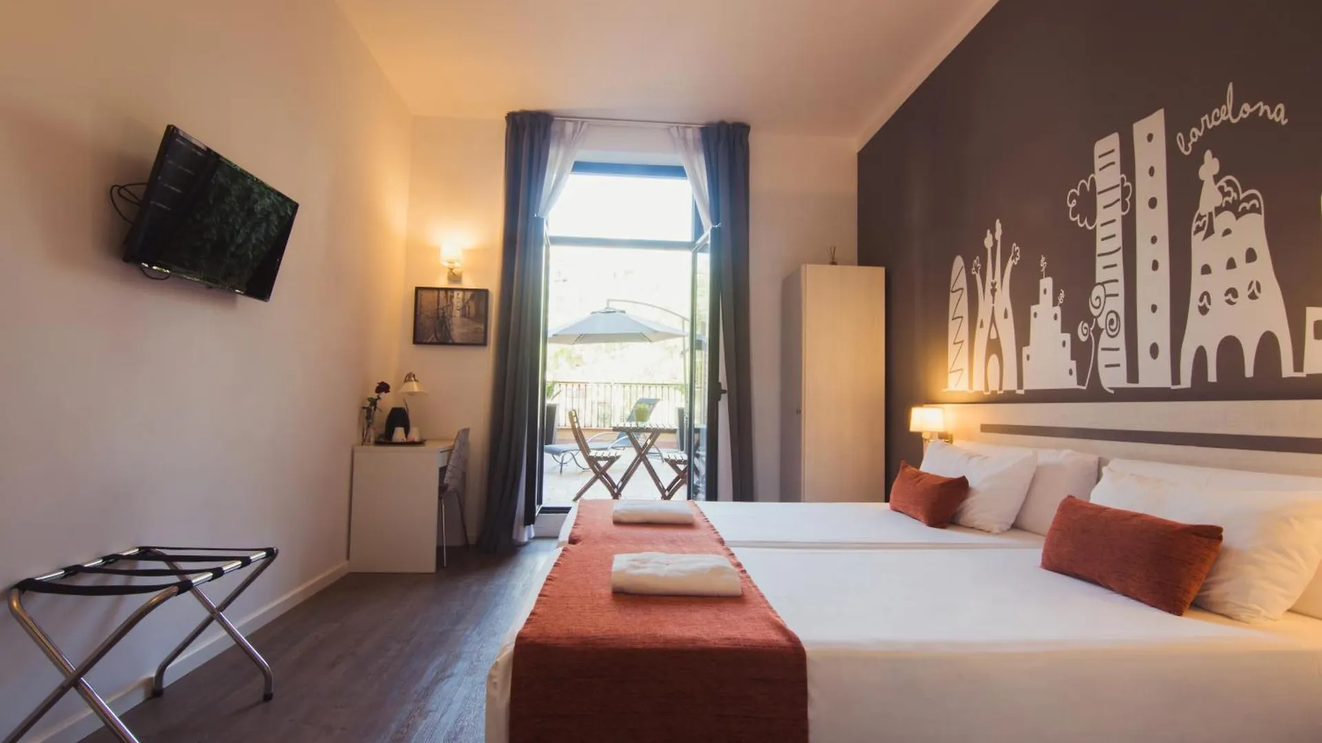 This Barcelona hotel is in the centre of the city, just 1.4 km from Las Ramblas Boulevard, and approximately 300 metres from Urgell tube station. The Casa Milà is around a 10-minute drive from the Hostal, while Barcelona El Prat Josep Tarradellas airport is 15 km from it.